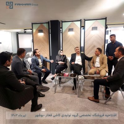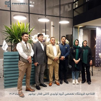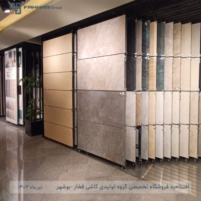 به گزارش روابط عمومی گروه تولیدی کاشی فخار عصر دوشنبه ۴ تیر ماه ۱۴۰۳, فروشگاه تخصصی گروه تولیدی کاشی فخار به نمایندگی جناب آقای نیکو در شهر بوشهر با حضور مدیریت فروش مجموعه افتتاح شد . این فروشگاه به مساحت حدود 300 متر در استان بوشهر ، نبش میدان مطهری سمت راست قرار دارد و دارای بروز ترین و کامل ترین نمونه ها و طرح های موجود گروه تولیدی کاشی فخار می باشد. لازم به ذکر است که این مرکز فروش به صورت تخصصی محصولات در سایز های مختلف، از کوچکترین سایز شامل ۱۵x۱۵ ،10×20 و… تا سایز های بزرگتر اسلب ۱۲۰x۱۲۰ و۸۰x۱۶۰ را دارا می باشد.