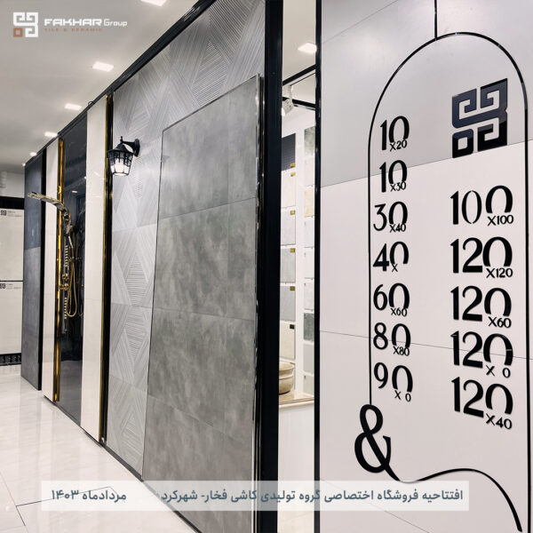 According to the public relations of Fakhar Tile Production Group, on Thursday, August 18, 1403, the specialized store of Fakhar Tile Production Group was opened in Shahrekord city by Mr. Ahmadi in the presence of the sales management of the complex. This store is located in Shahrekord city, Ferdowsi Street and has the most up-to-date and complete samples and designs available from Fakhar Tile Production Group. It should be noted that this sales center specializes in products in different sizes, from the smallest size including 15×15, 10×20 and … to larger sizes of slabs 120×120 and 80×160.
